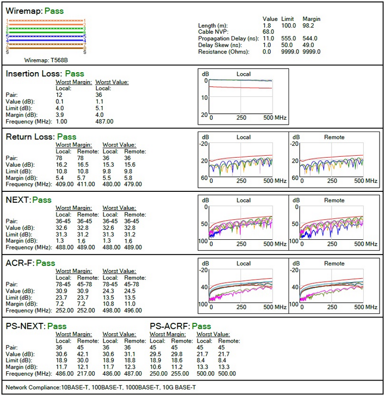 Today, manufacturers of quality patch cables perform an extensive battery of tests in compliance with this and other standards. As the use of higher speed network protocols such as 2.5G Base -T, 5G Base-T and 10G Base-T become more common the performance of the patch cords in a channel becomes more critical. For example, test reports such as the one from Quabbin, shown in Figure 2, show the results of electrical measurements. The company offers training and support to its assembly partners to ensure that its patch cords are fully tested and have the performance margin required to be interoperable in most Cat 6 and Cat 6a channels while also being backward-compatible with Cat 5e and earlier network standards. Detailed information about these tests is available on the Quabbin website.